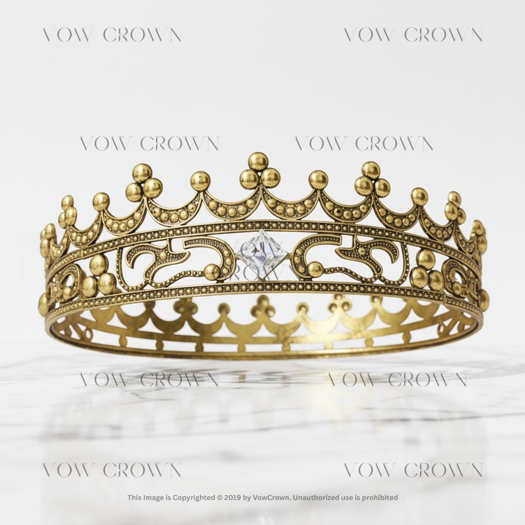 Antique Gold Royal Crown | Full Round Medieval King Vintage Crown Headpiece | Baroque Costume Crown for Men