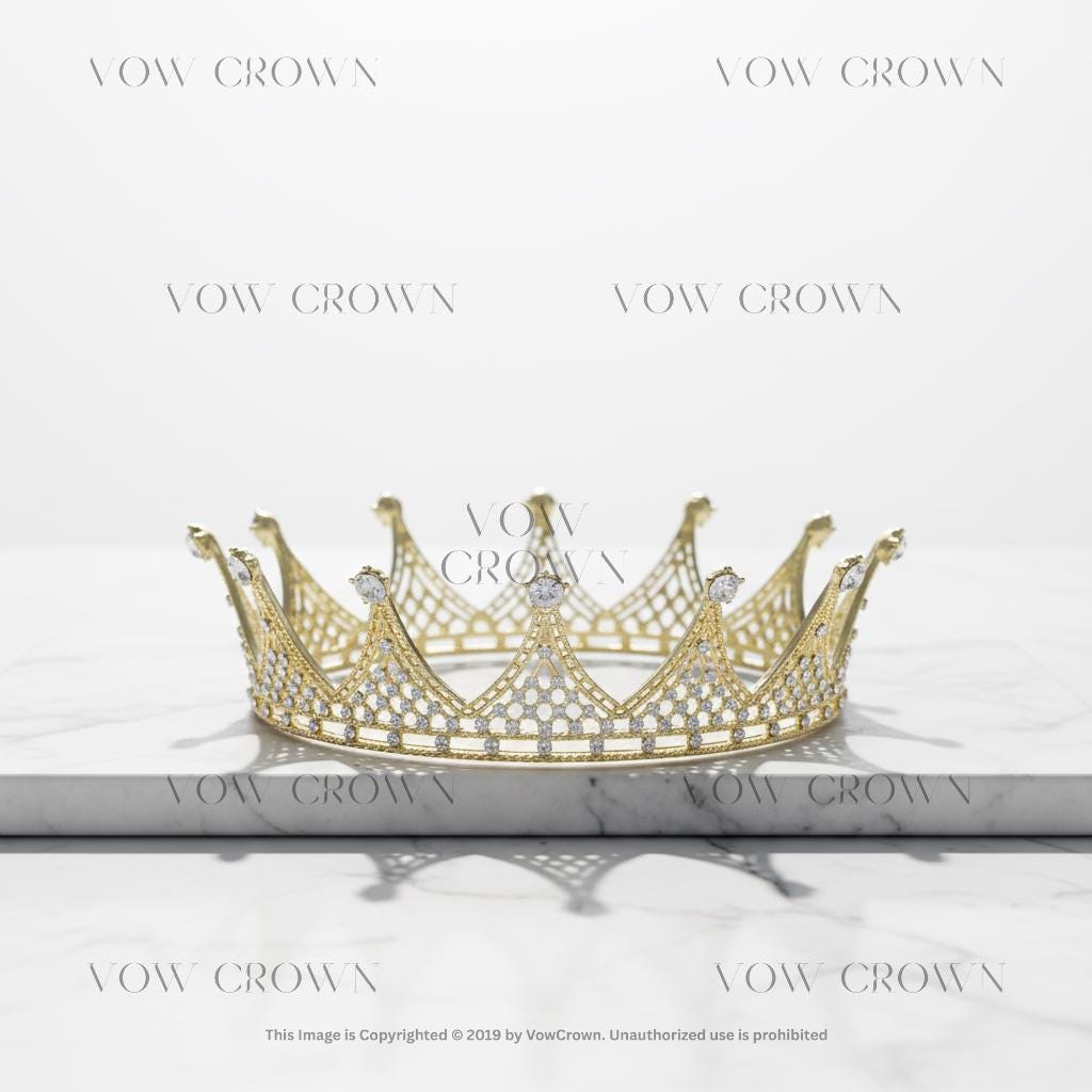 Antique Gold Medieval King Royal Crown | Vintage Full Round Crown for Men | Baroque Renaissance Headpiece