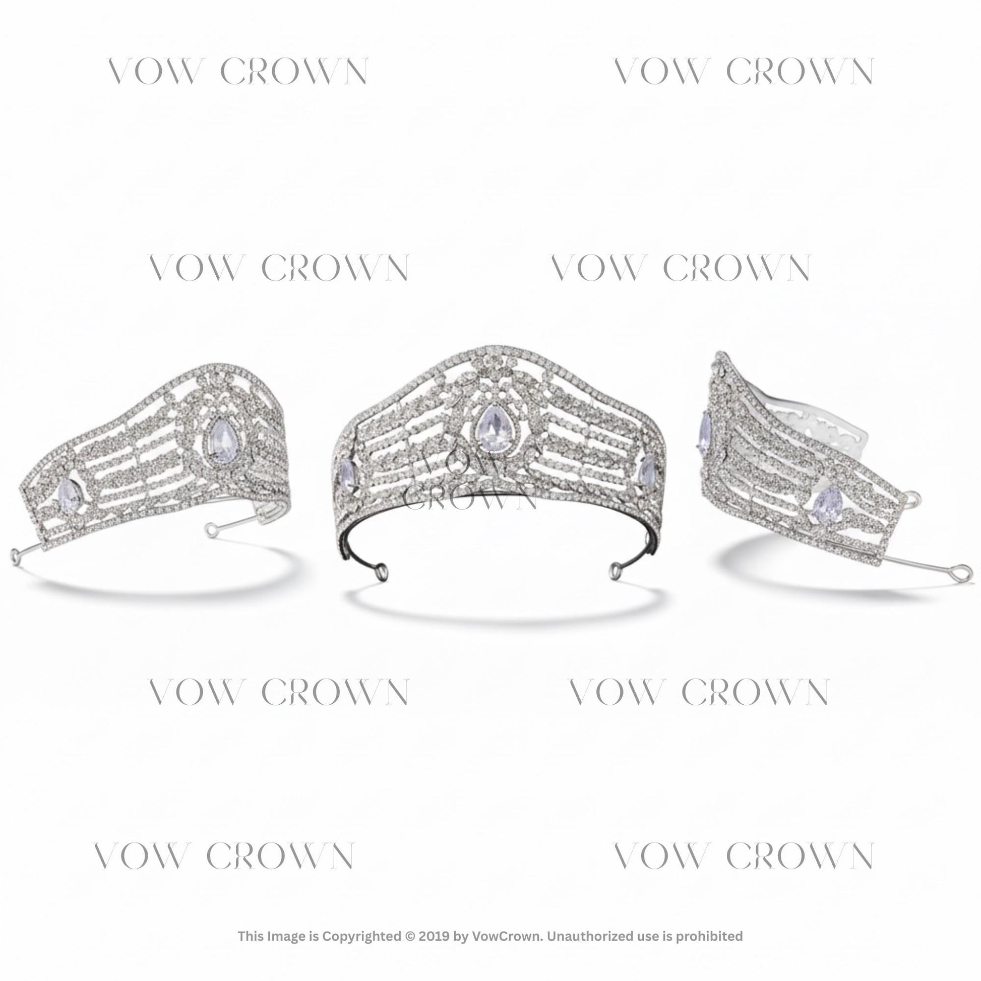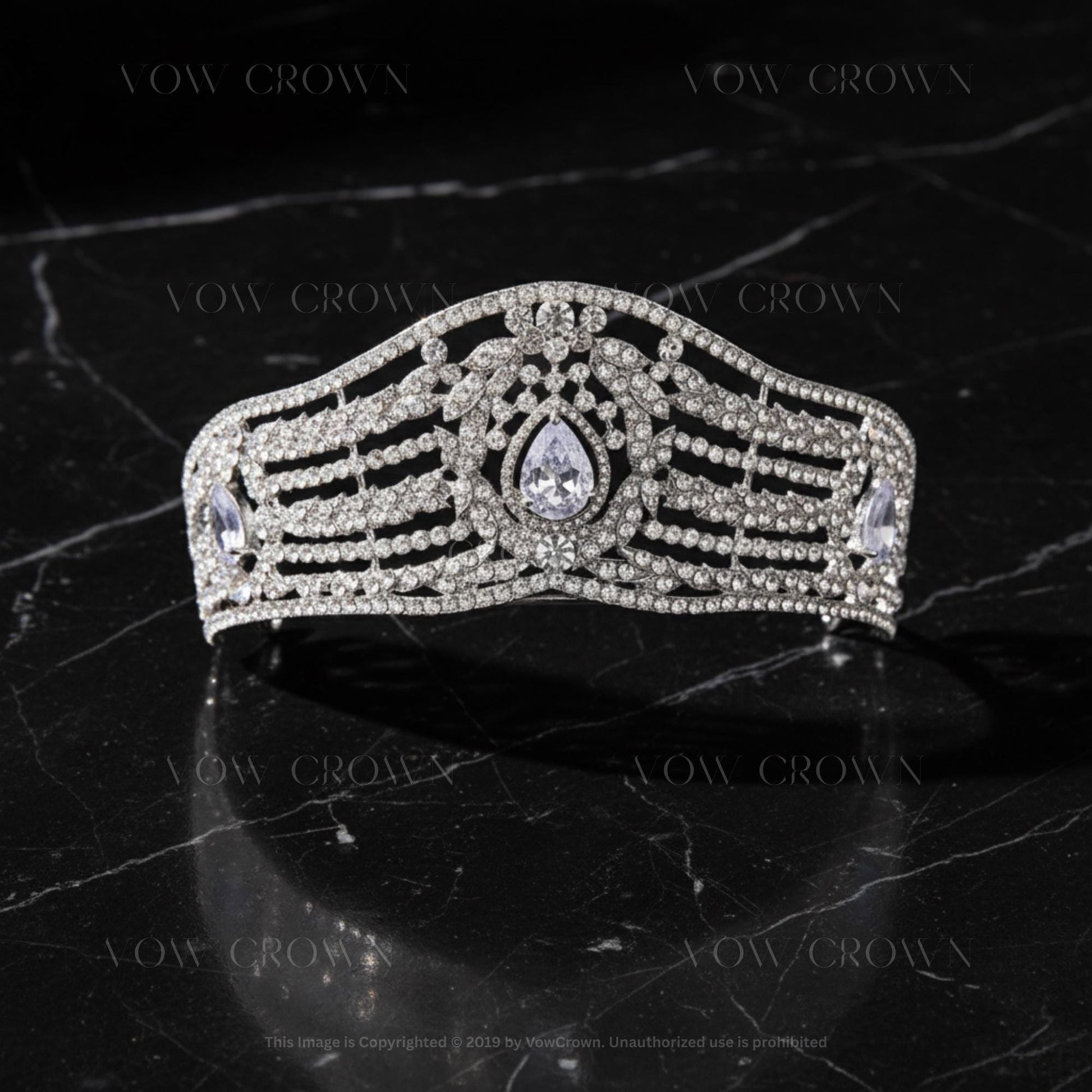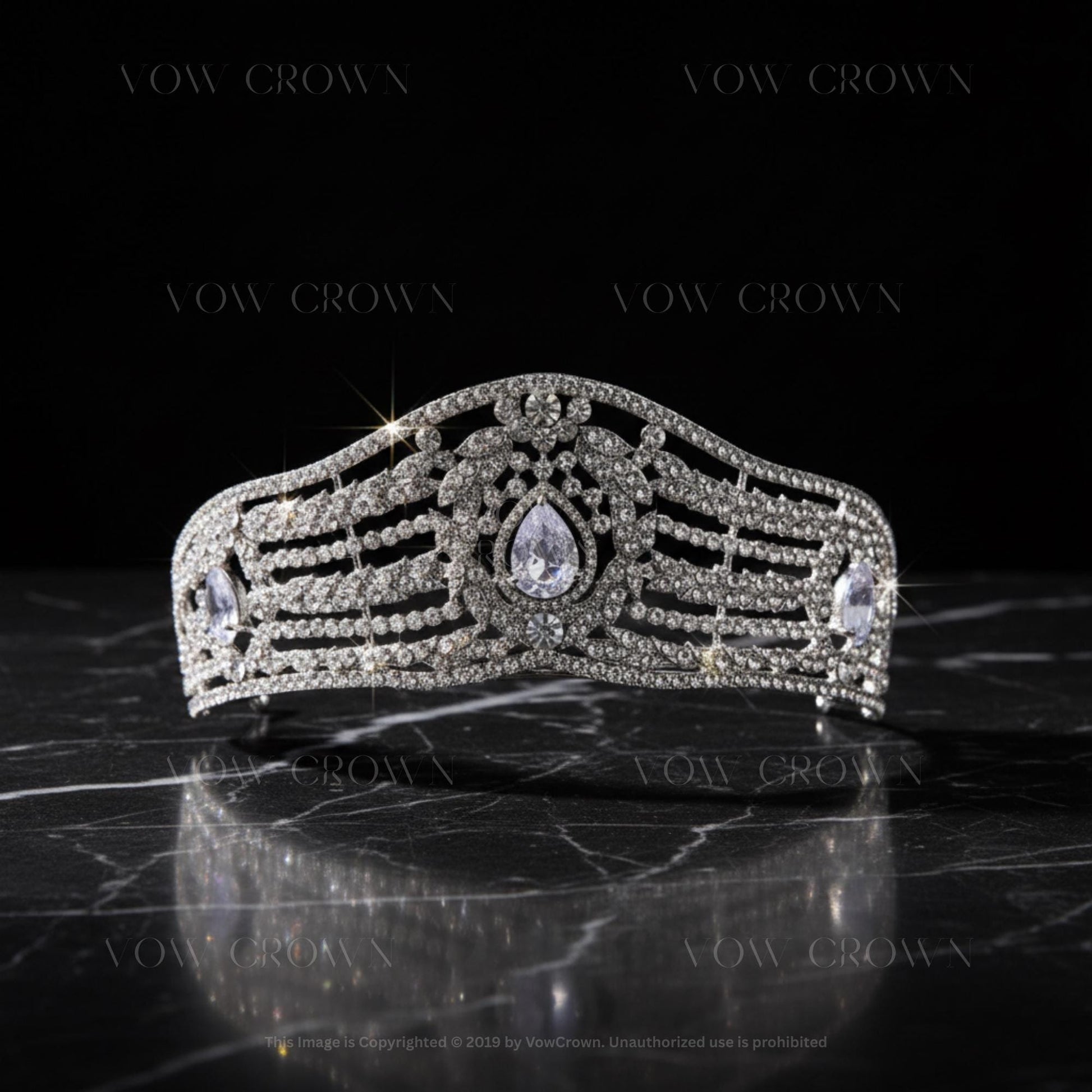 Art Deco Crystal Bridal Tiara | Silver Wedding Crown with Teardrop Stone | Vintage Royal Tiara | Luxury Bridal Queen Headpiece