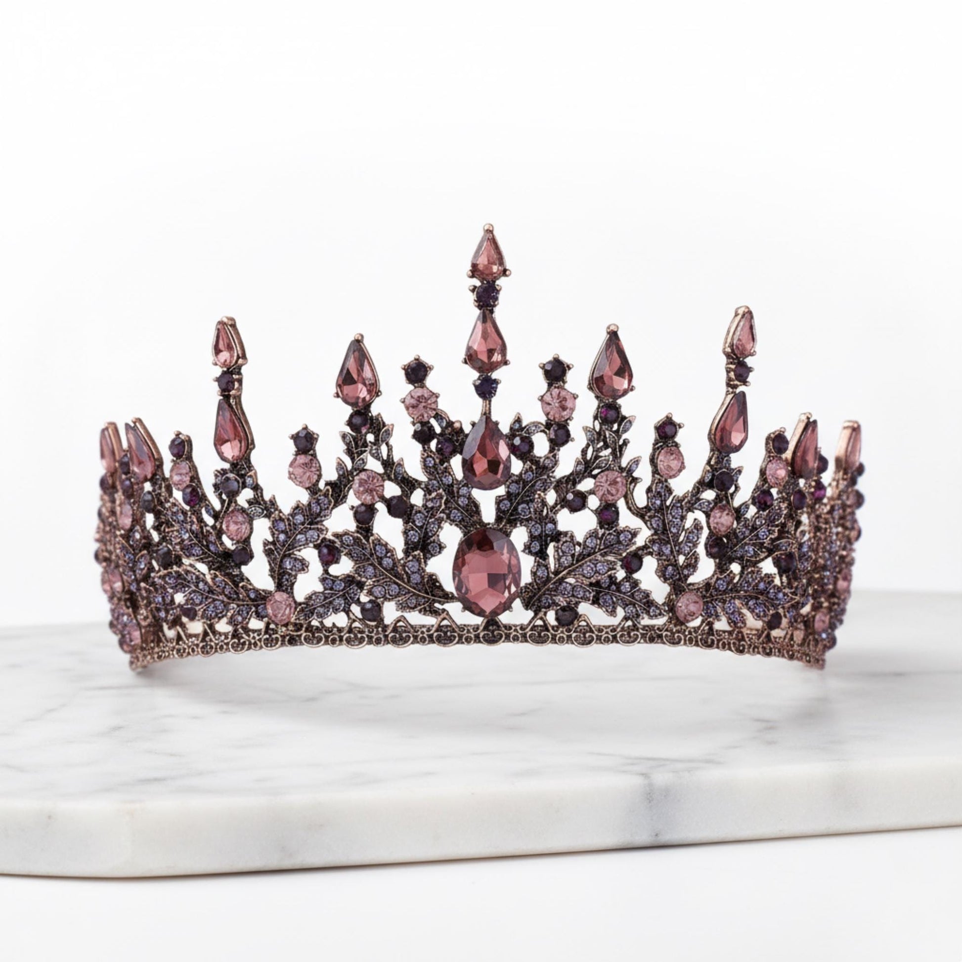Bronze Violet Floral Tiaras Crown | Ornate Vine Queen Tiara | Royal Peach Crown