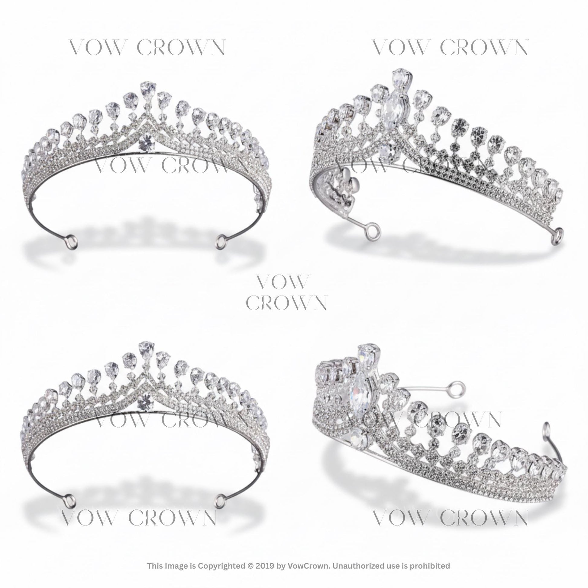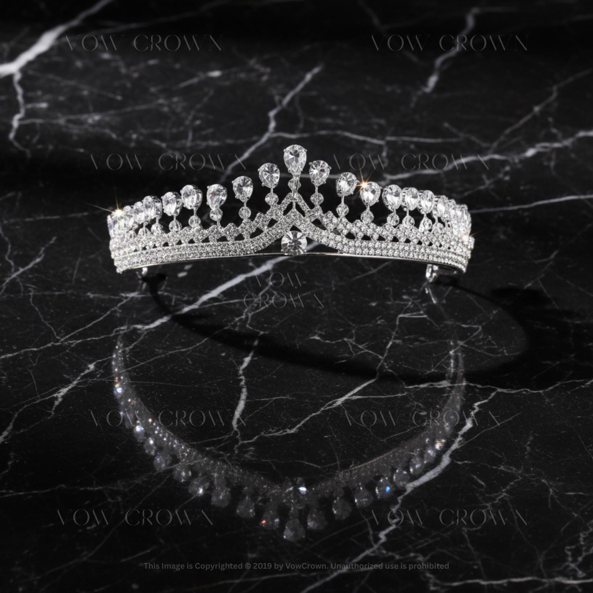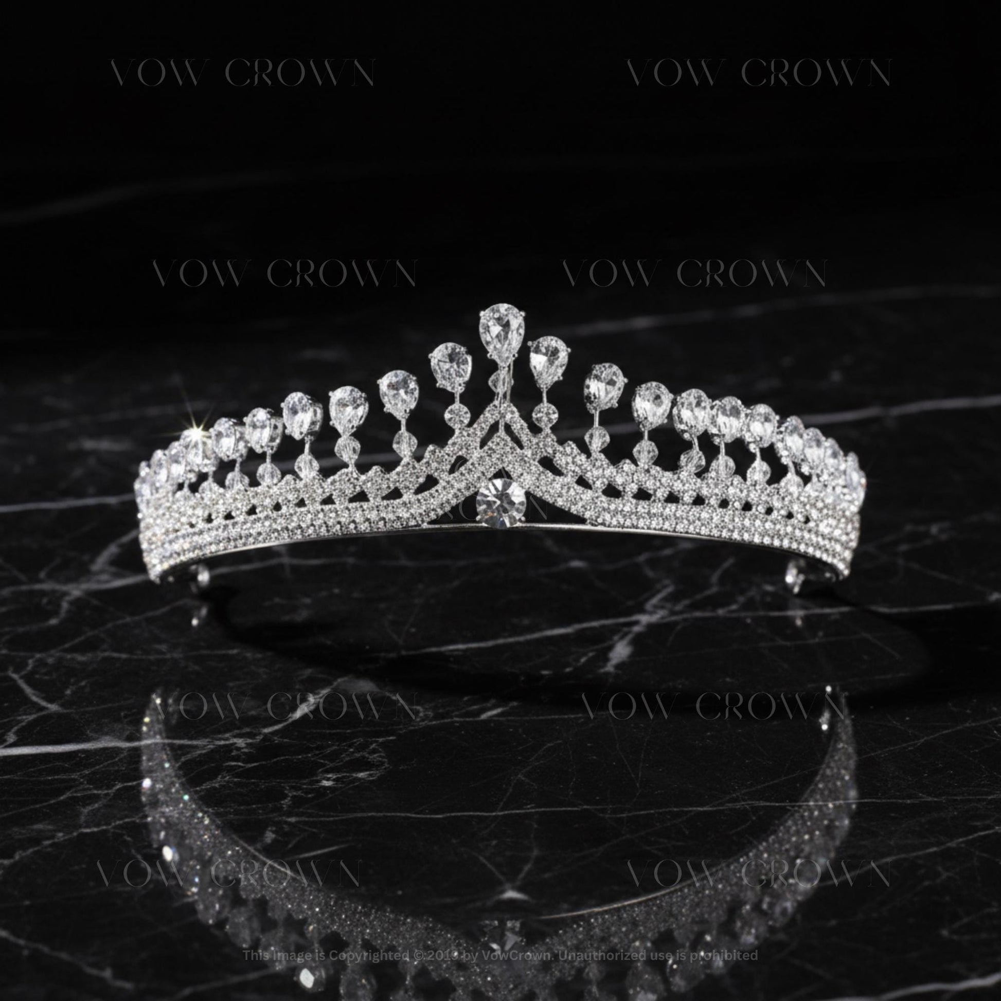 Crystal Wedding Tiara Crown | Silver Bridal Tiara with Pear Cut Stones | Royal Princess Crown | Luxury Bridal Headpiece | Queen Hair Jewelry