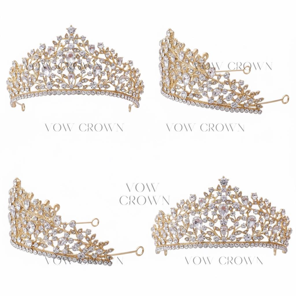 Crafted with a sturdy yet lightweight gold-tone alloy base and high-grade rhinestones—comfortable for long wear and designed to shine brilliantly in every photo.