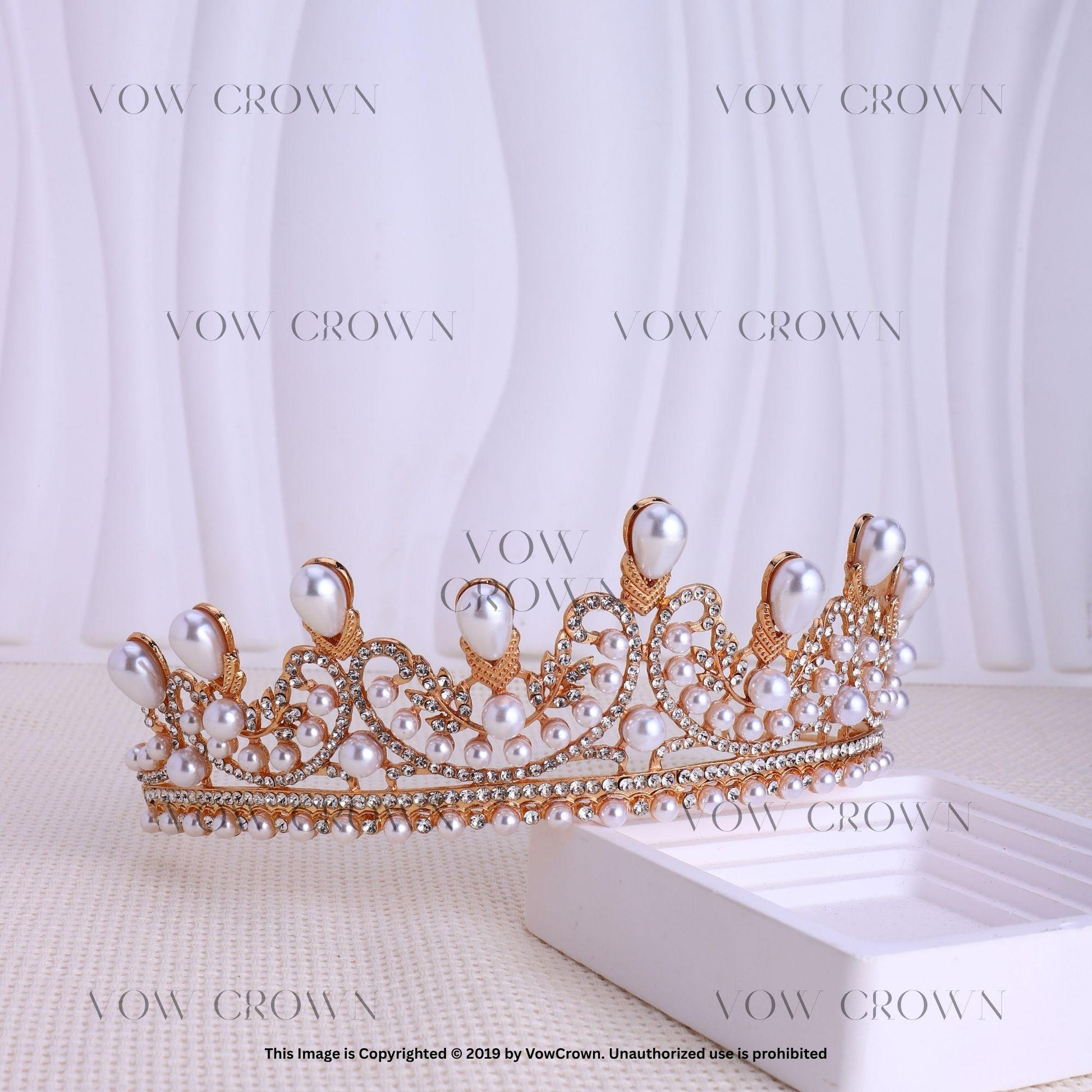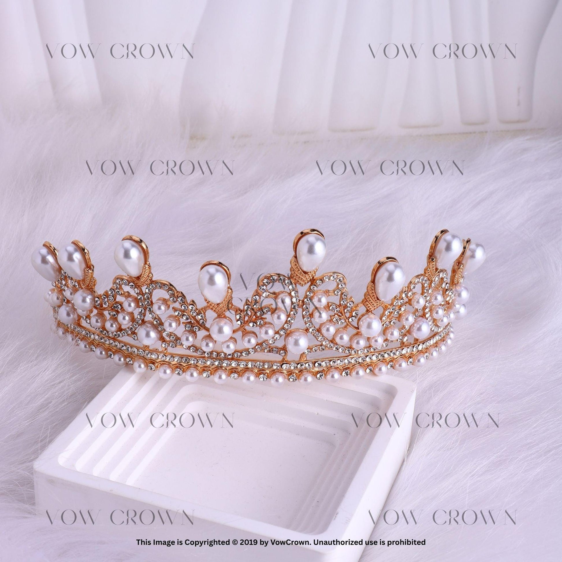 Gold Baroque Pearl Wedding Tiara: Rhinestone Bridal Crown