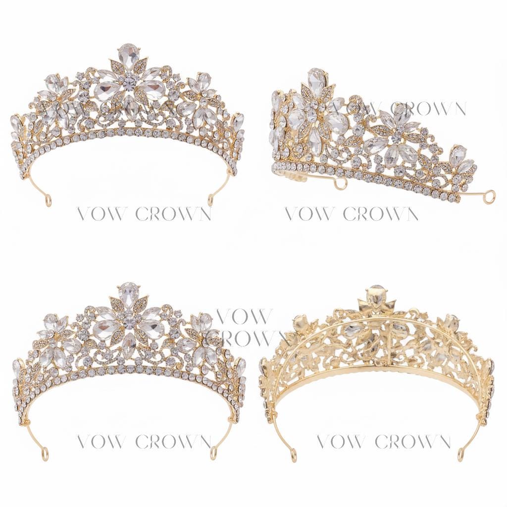 β¨ Add a truly regal touch to your look with this luxurious gold bridal tiara, beautifully designed with a floral-inspired arrangement of pear-cut crystals, marquise stones, and shimmering round rhinestones. The balanced height and graceful curves create a timeless, queen-like silhouette that shines effortlessly from every angle.