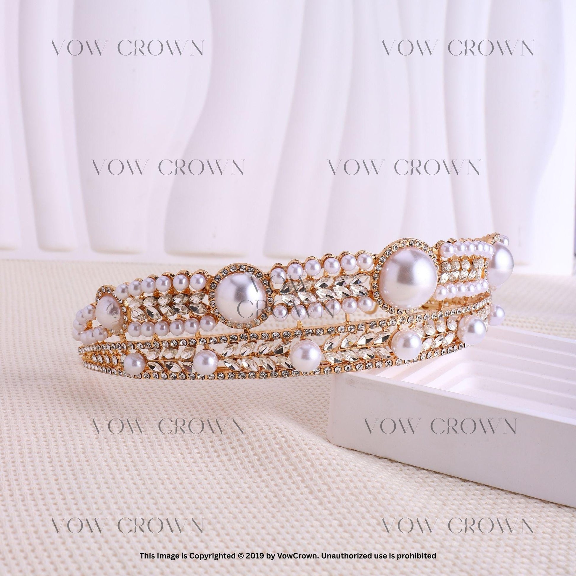 Gold Pearl Bridal Tiara: Rhinestone Wedding Crown