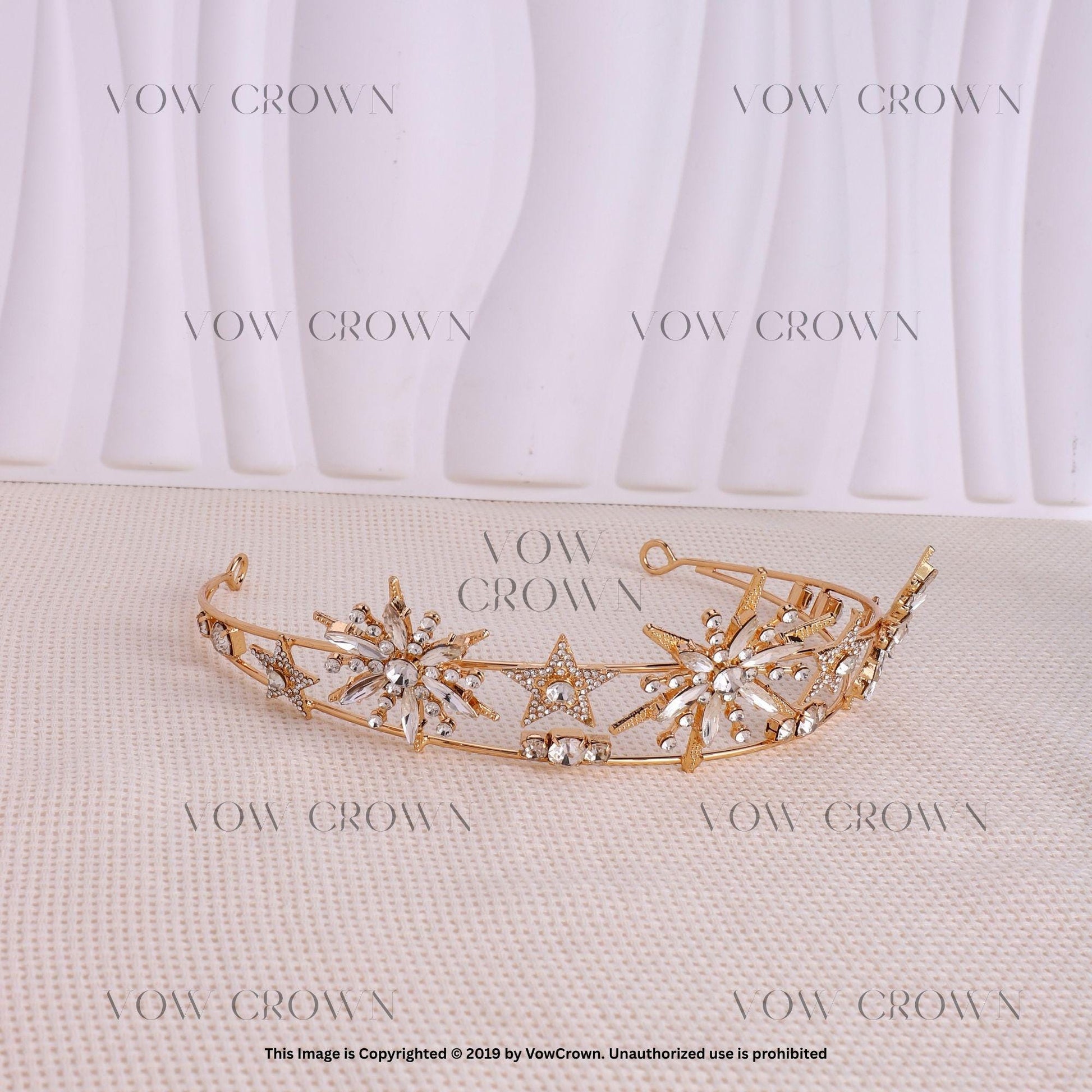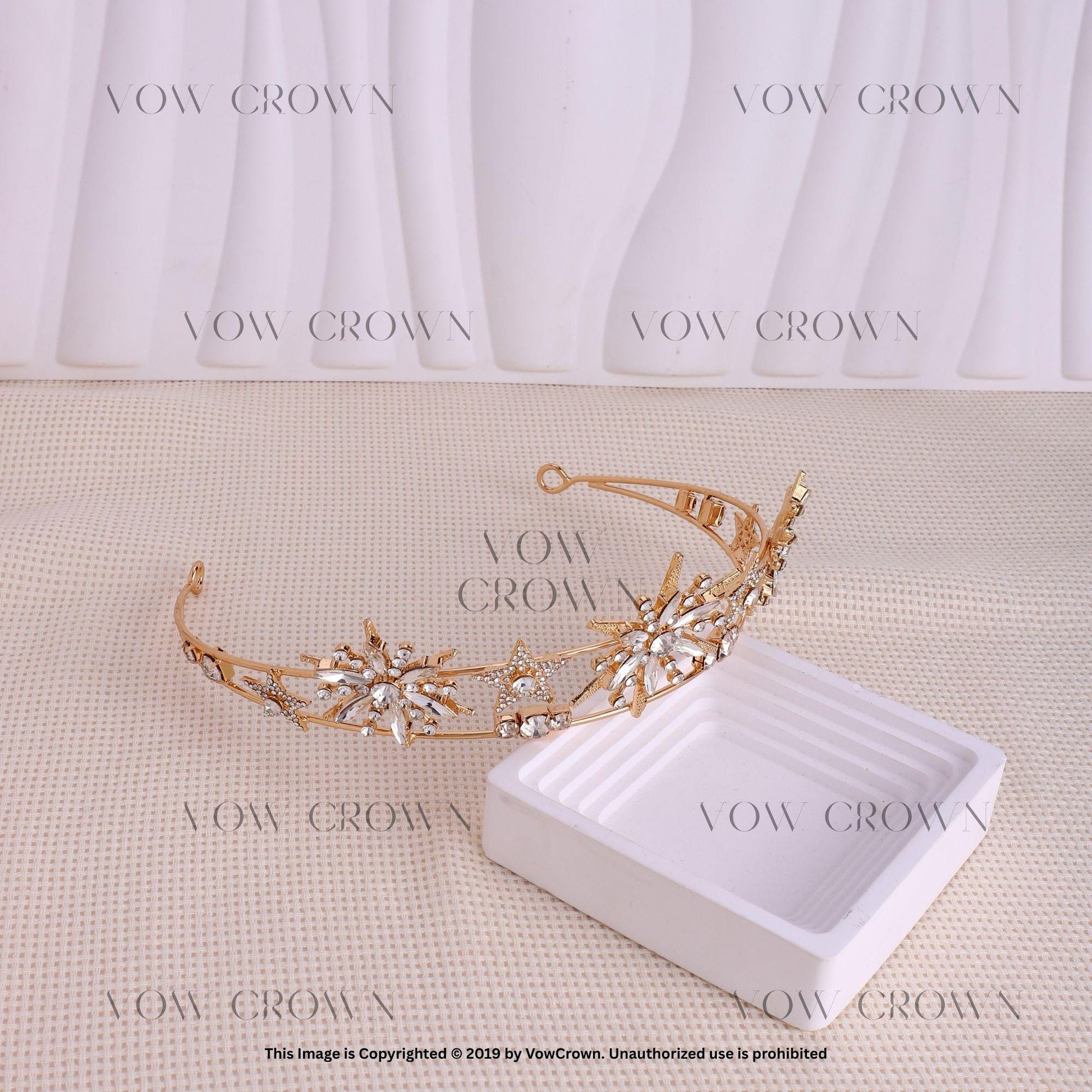 Gold Starburst Crystal Tiara: Celestial Wedding Crown