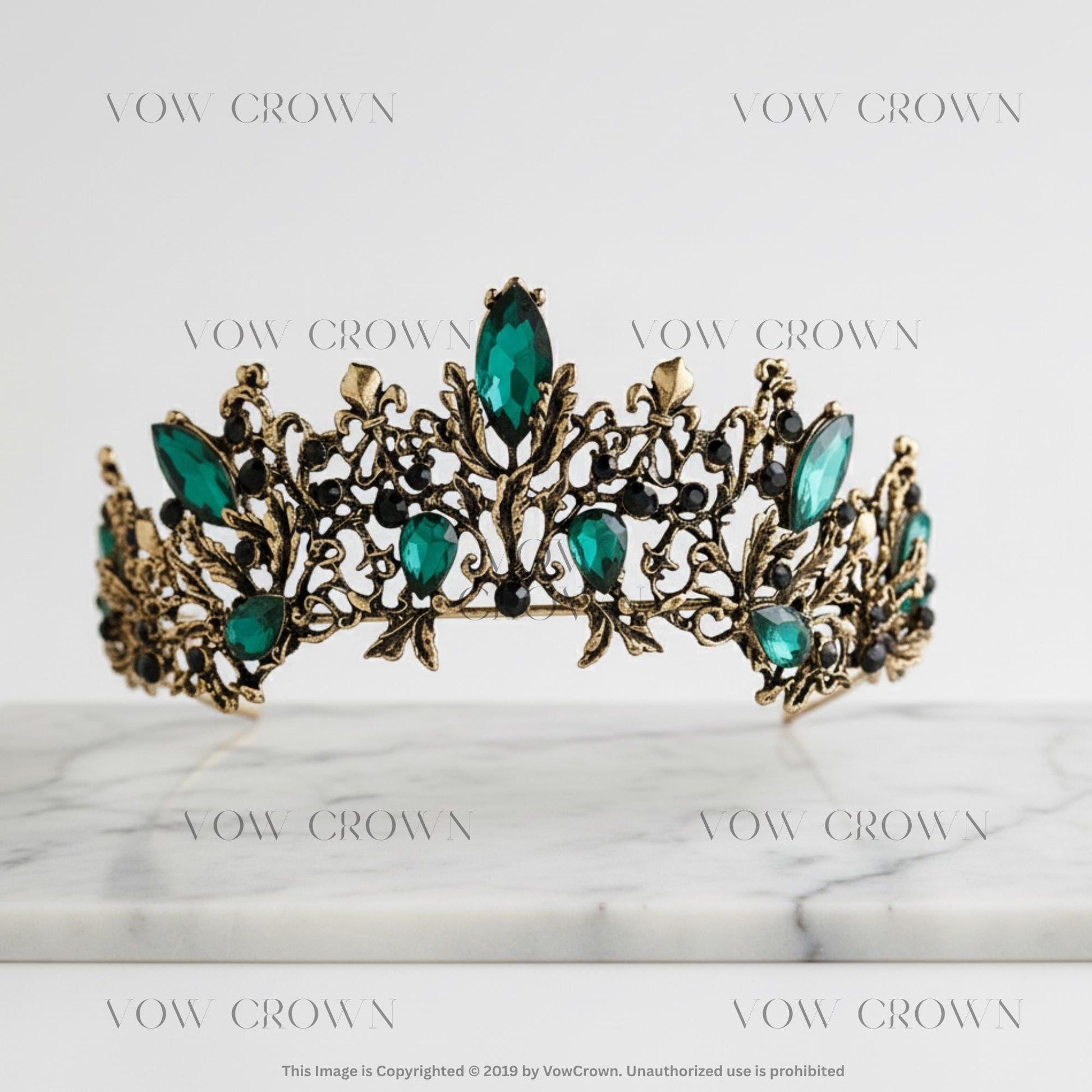 Gothic Red Crystal Crown | Antique Bronze Tiara, Dark Wedding