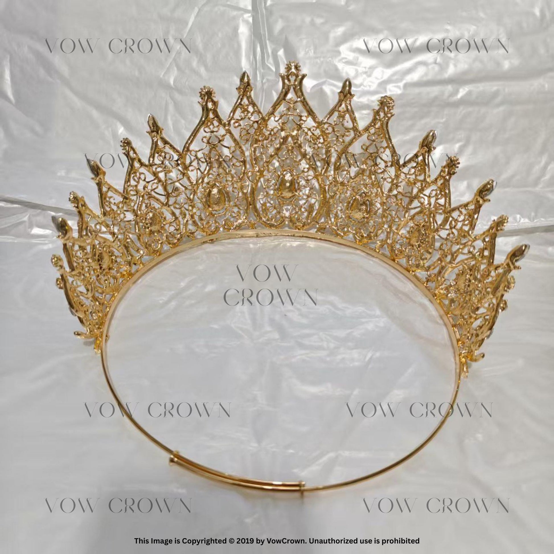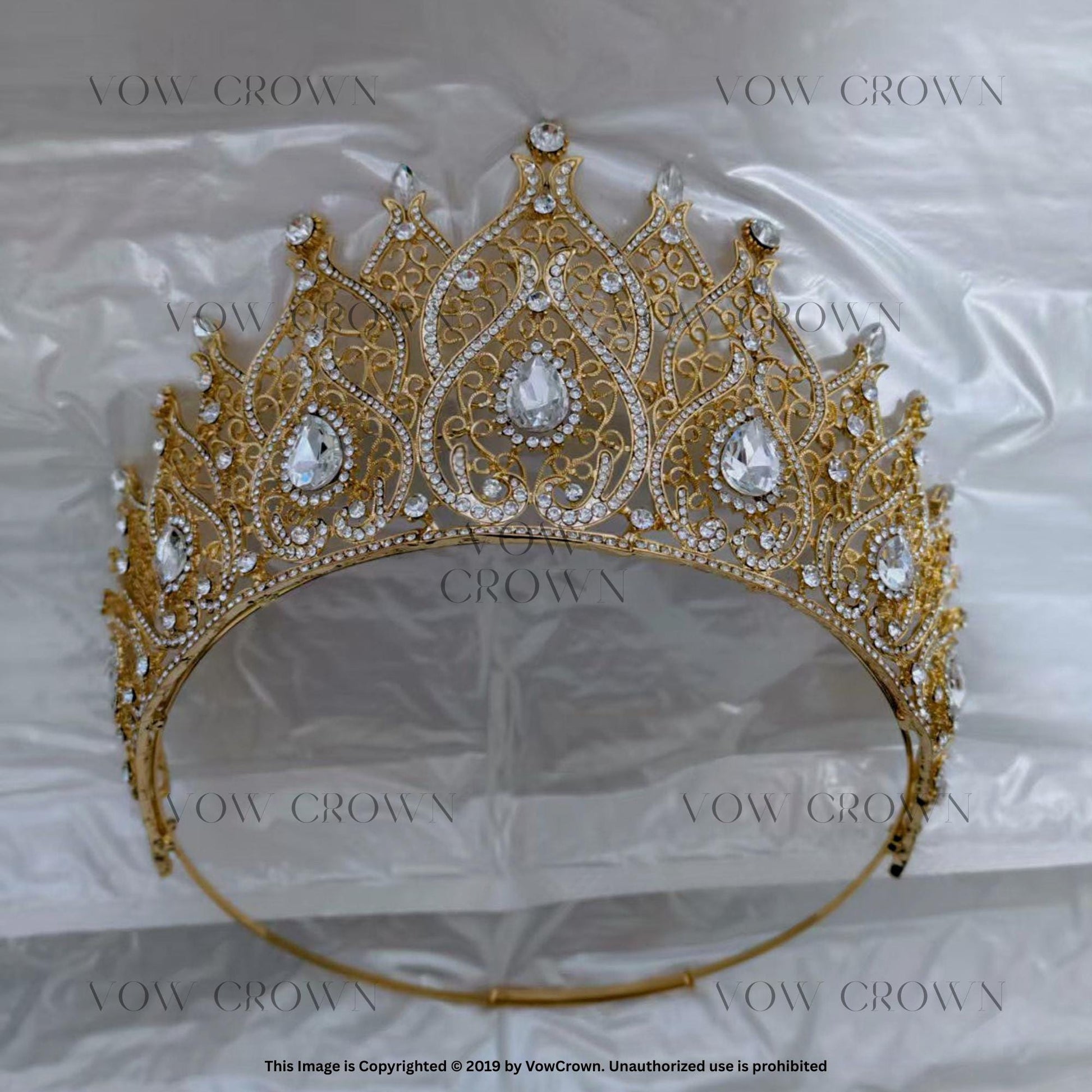 Handmade Royal Gold Rhinestone Wedding Crown: Filigree Crystal Tiara
