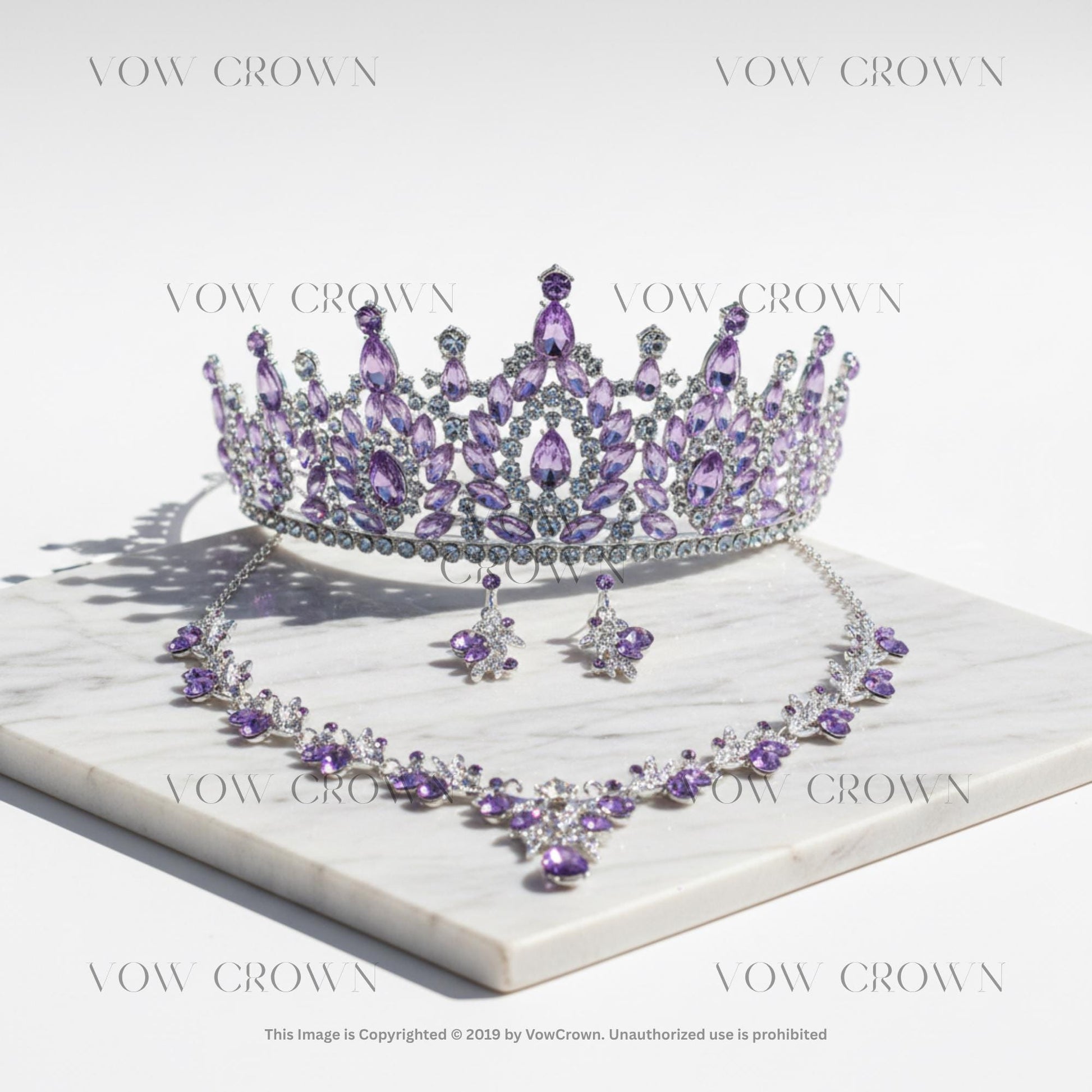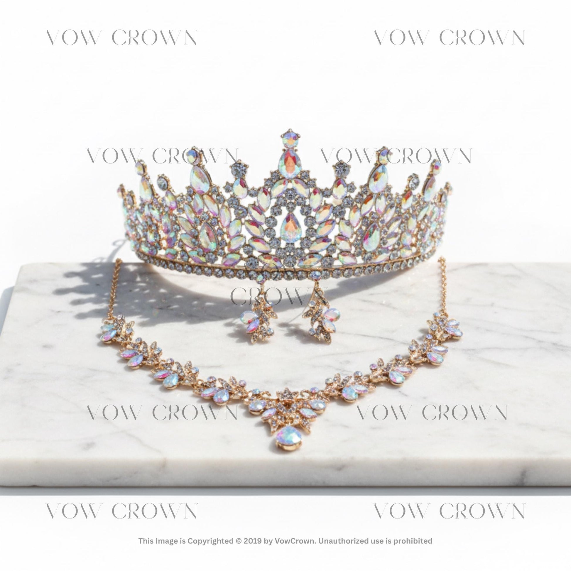 Light Blue Opal Crystal Bridal Wedding Tiara Necklace & Earrings Set, Frozen Queen Pageant Crown