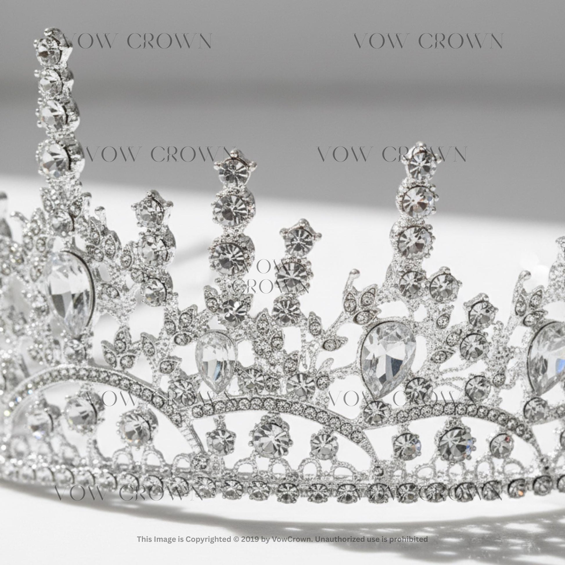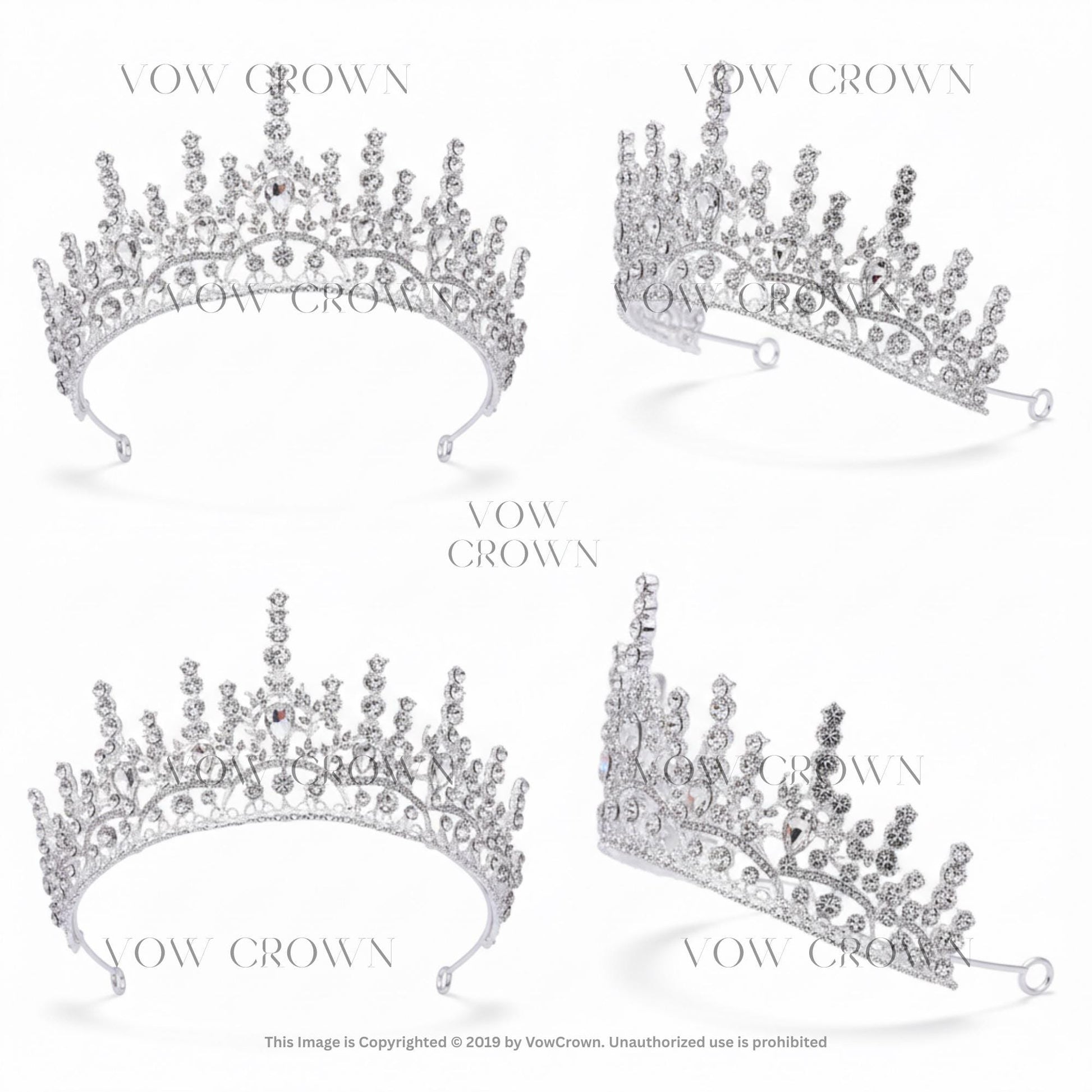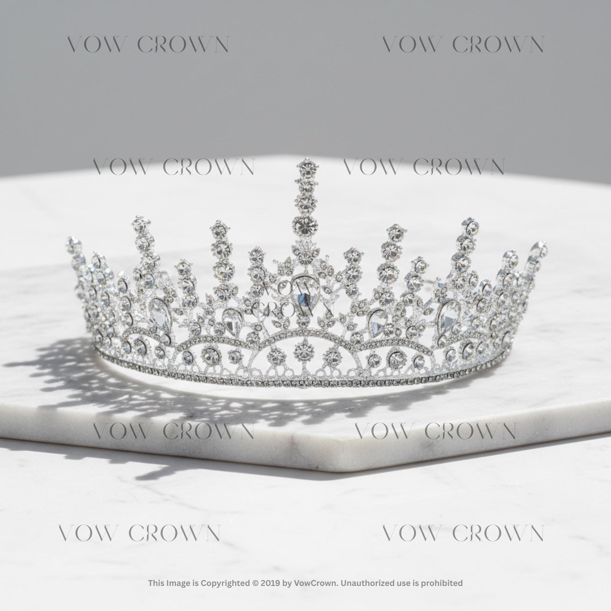 Luxury Silver Crystal Bridal Crown | Tall Royal Wedding Tiara | Full Rhinestone Queen Headpiece