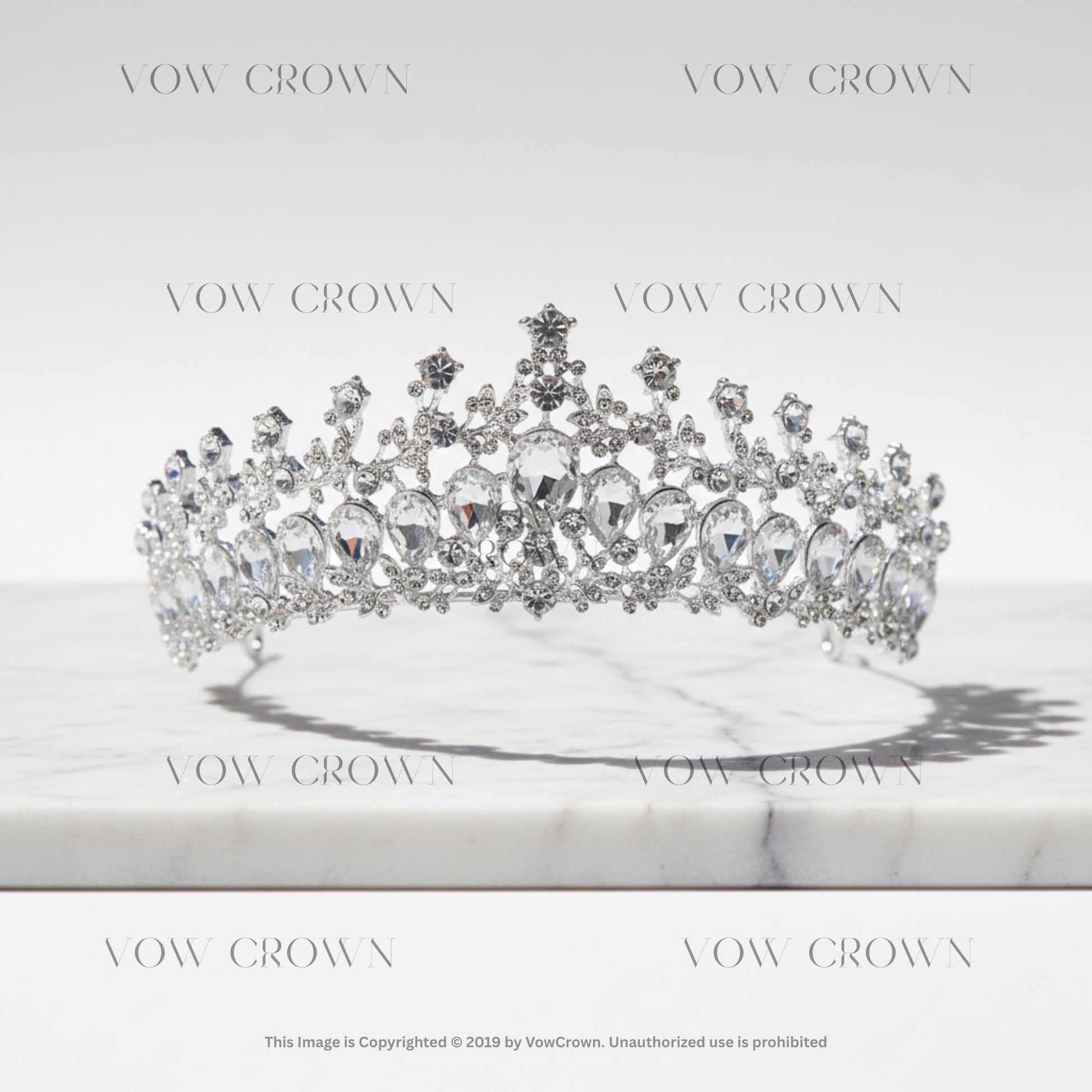 Luxury Silver Crystal Bridal Tiara Crown | Vintage Baroque Wedding Headpiece | Queen Princess Rhinestone Tiara