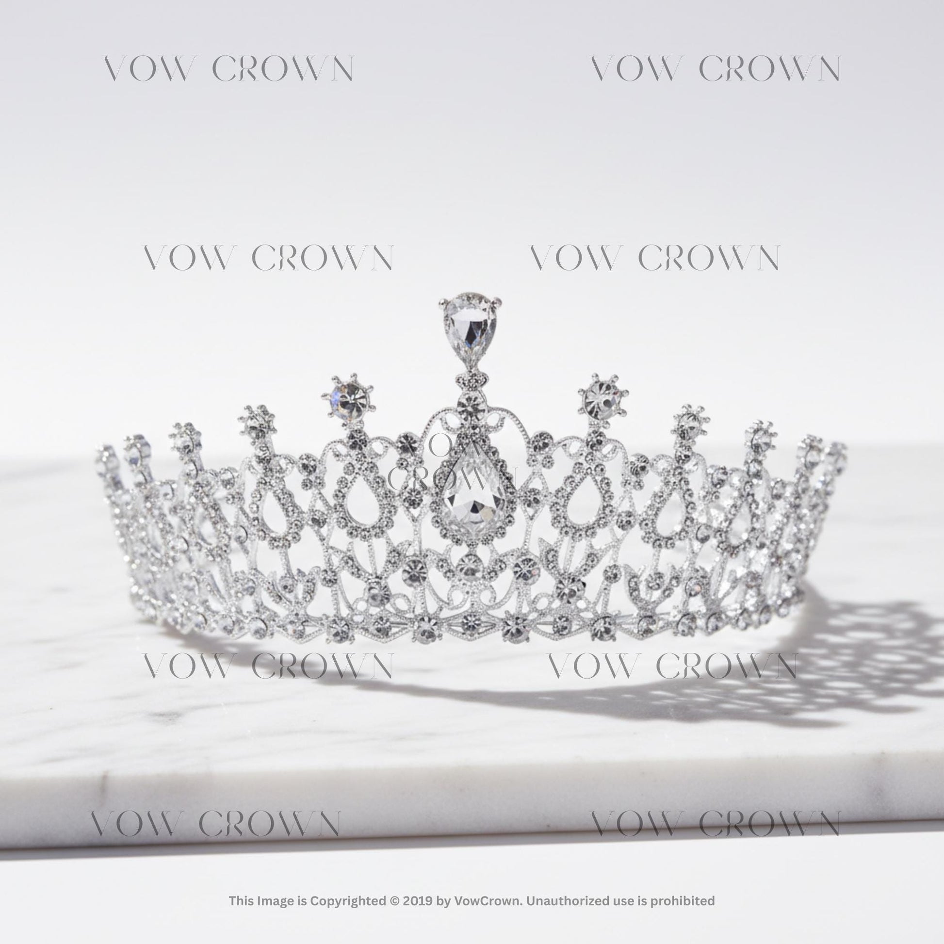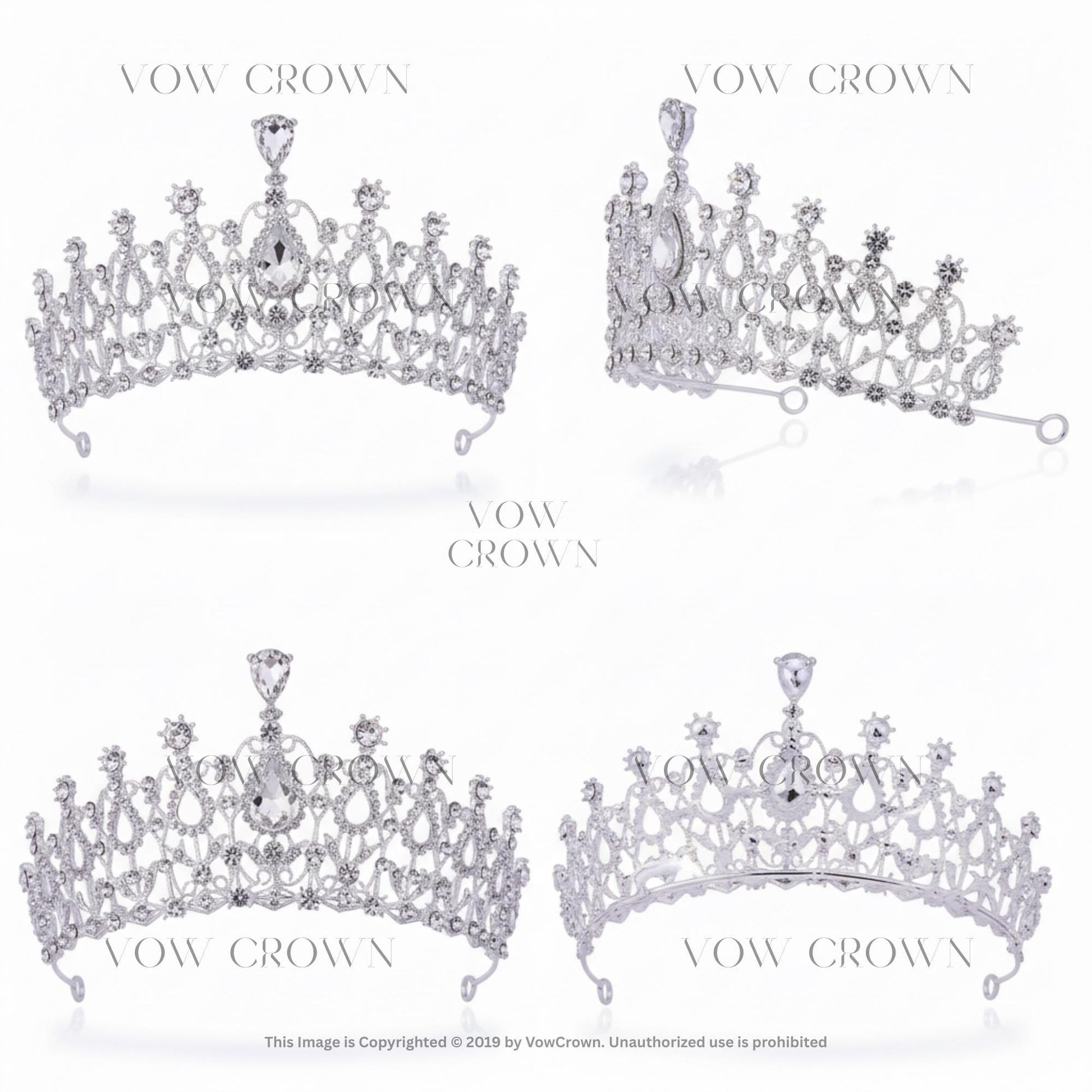 Luxury Silver Crystal Bridal Tiara | Teardrop Rhinestone Wedding Crown | Vintage Princess Queen Headpiece