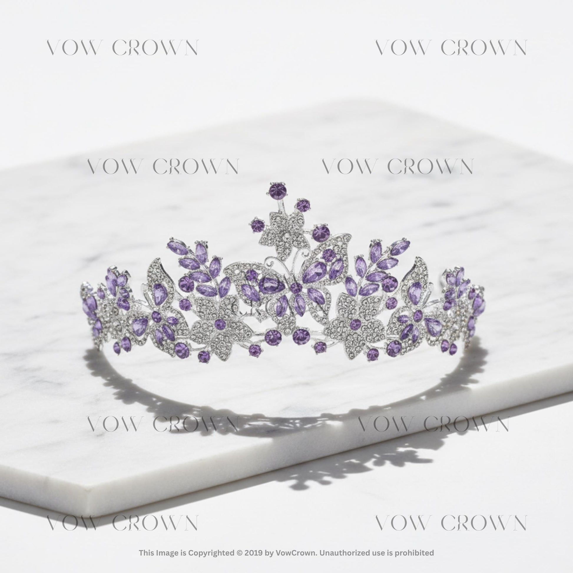 Pink Purple Crystal Butterfly Rhinestone Tiaras Crown | Women Wedding Diadem | Royal Vine Crown