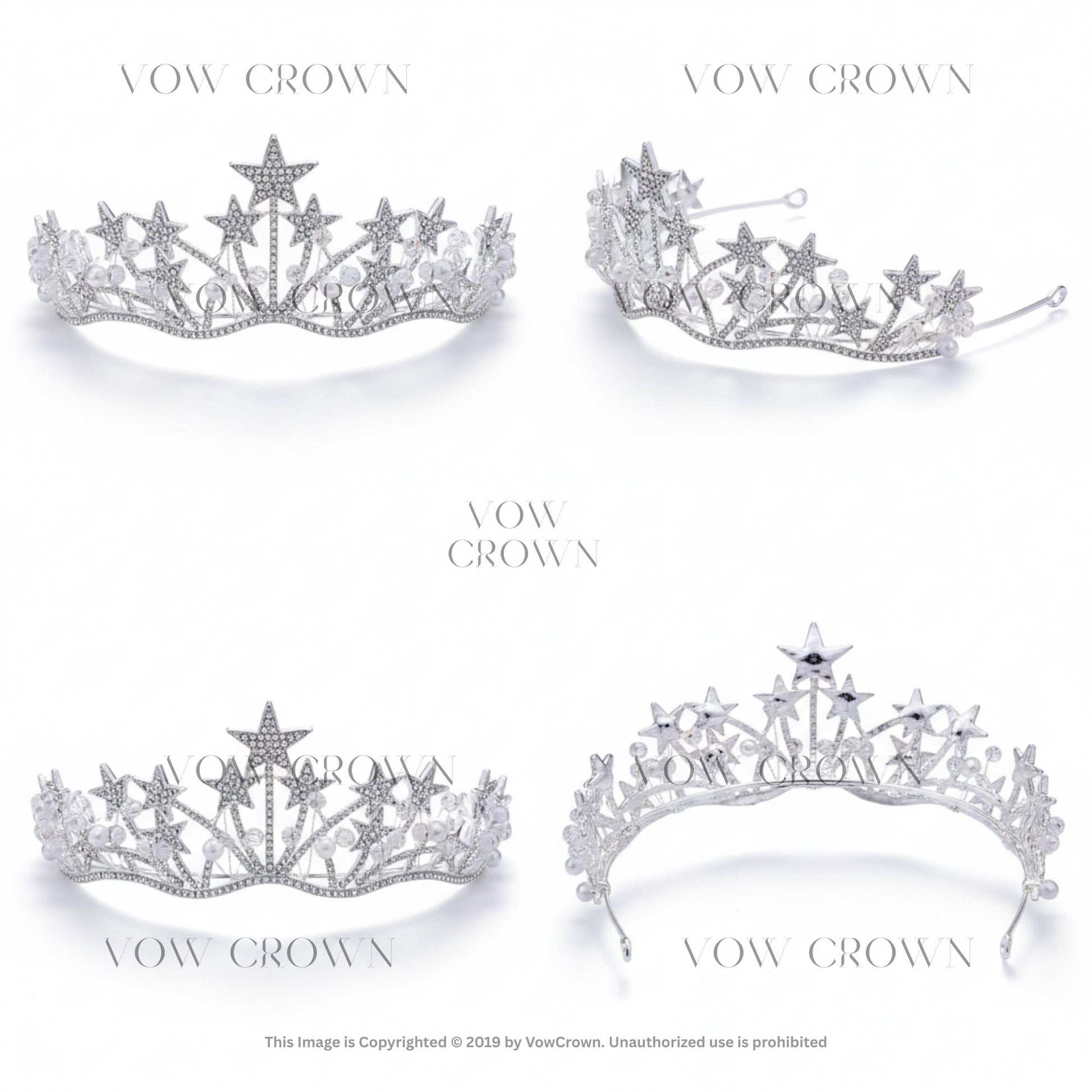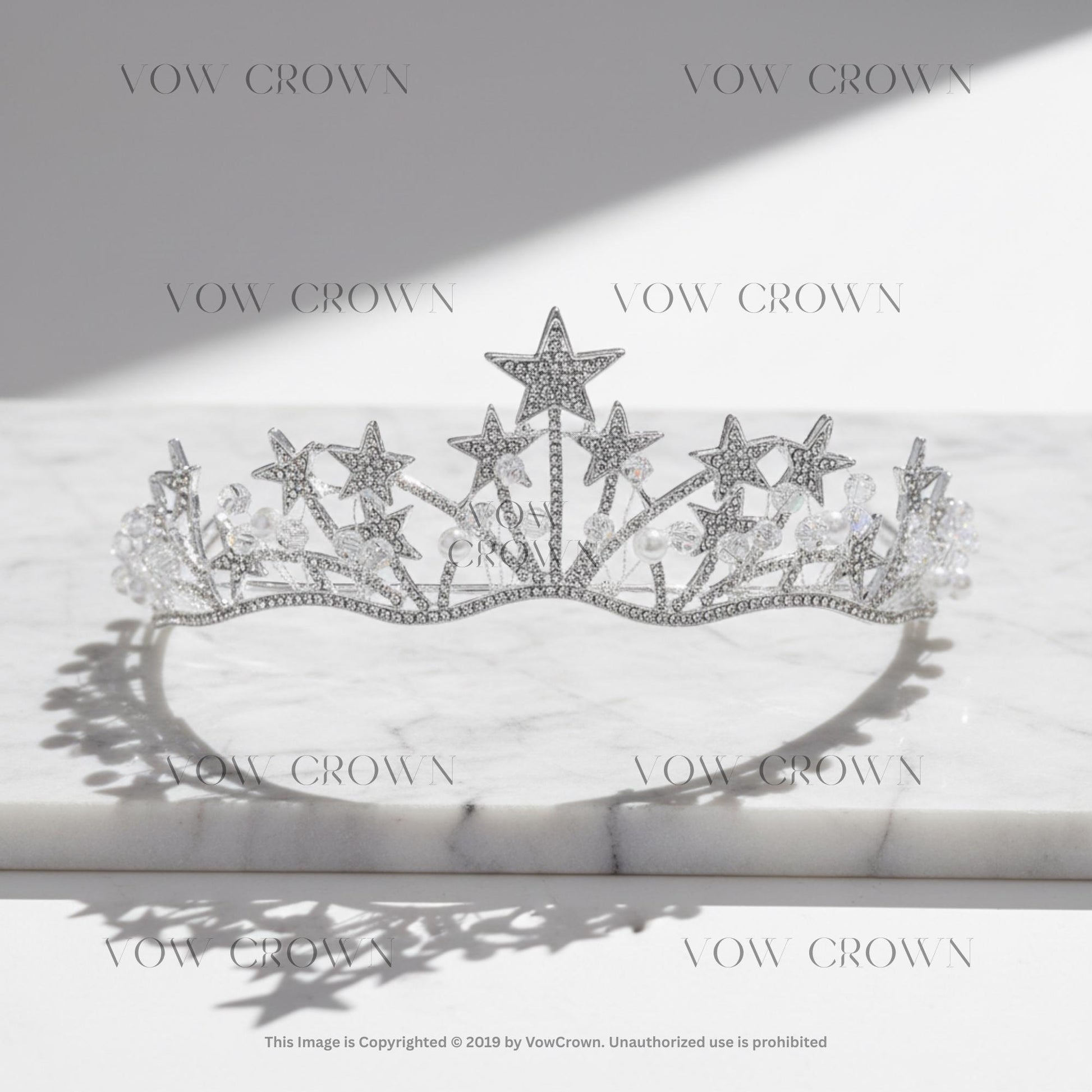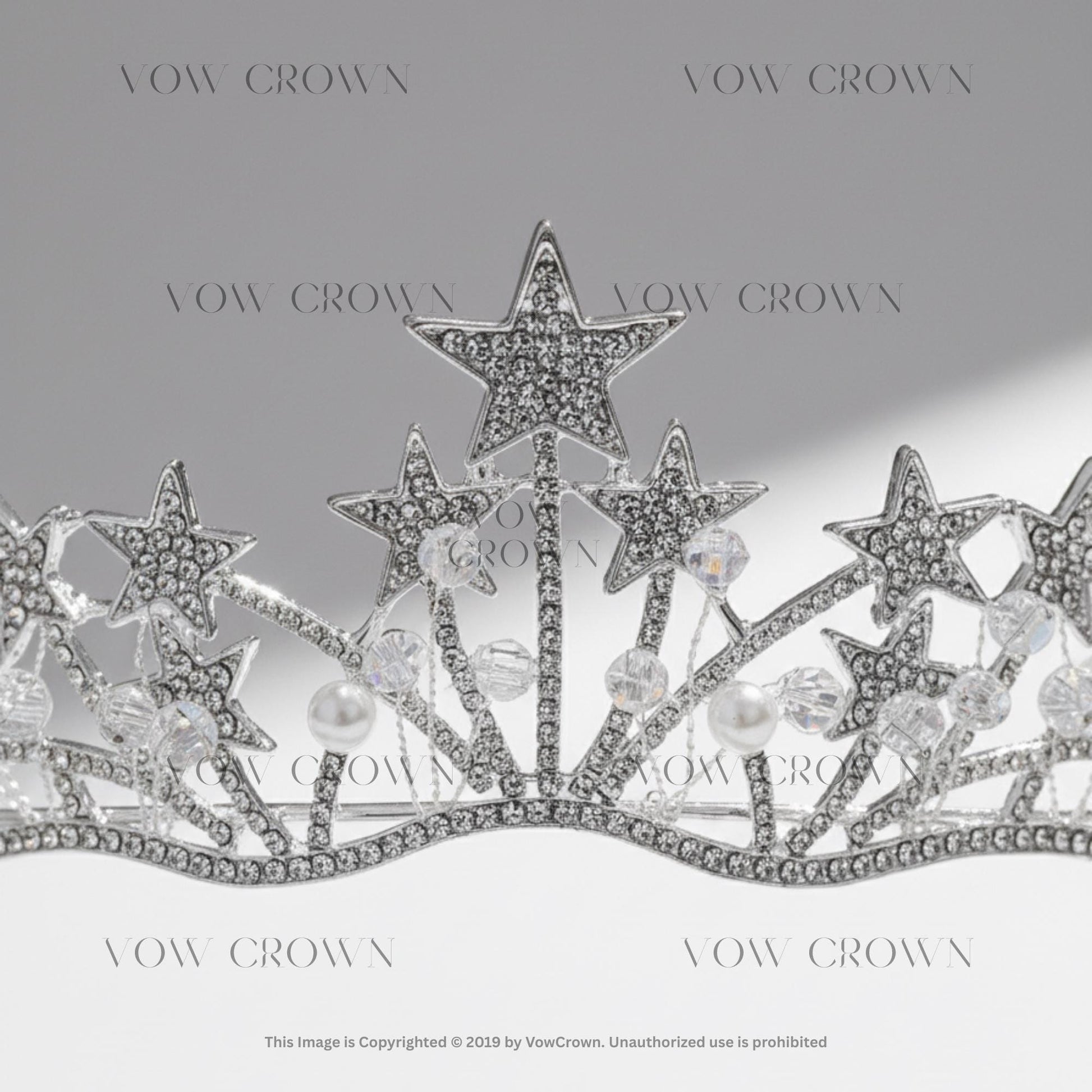 Silver Star Crystal Bridal Tiara | Celestial Wedding Crown | Sparkling Rhinestone Princess Headpiece