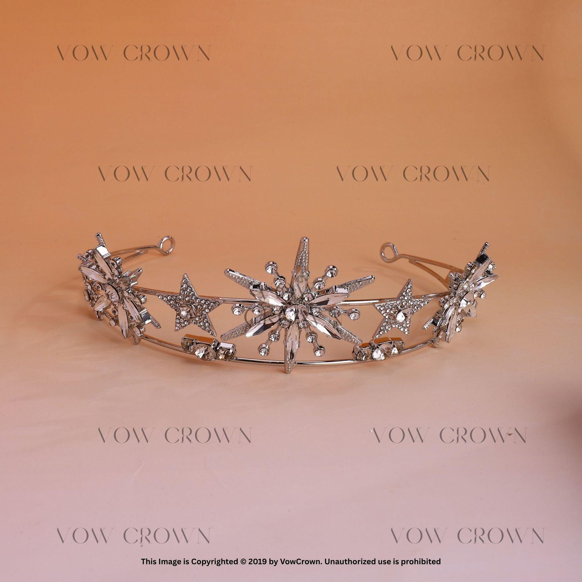 Silver Starburst Tiara: Crystal Celestial Wedding Crown