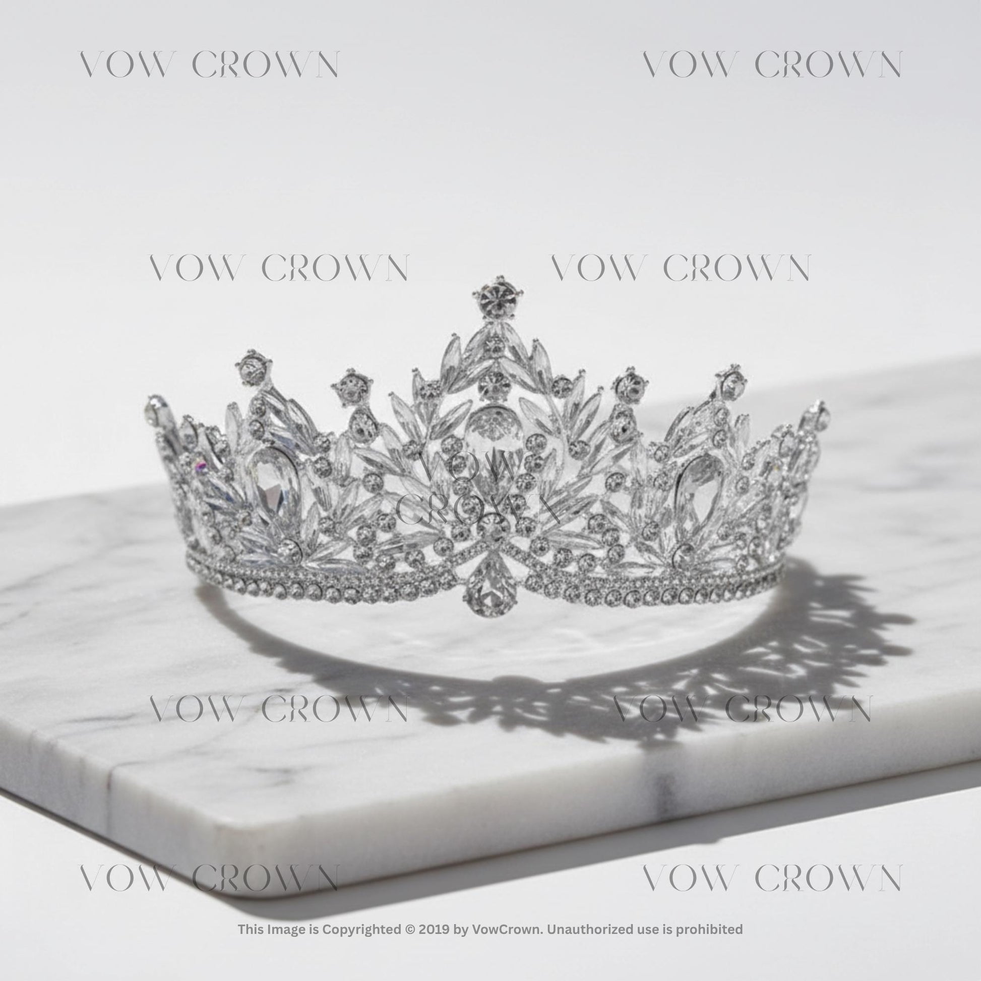 Step into your iconic royal moment with our VowCrown Starlight Cluster Crown, exquisitely designed for brides, pageants, proms, and glamorous events. Each crown is a masterpiece, handcrafted with Dazzling Starburst Crystals set in a bright silver setting that captures the light from every angle — making you shine like true royalty. The intricate, leaf-inspired clusters and brilliant pear and marquise-cut rhinestones create a dramatic, elevated silhouette of pure elegance.